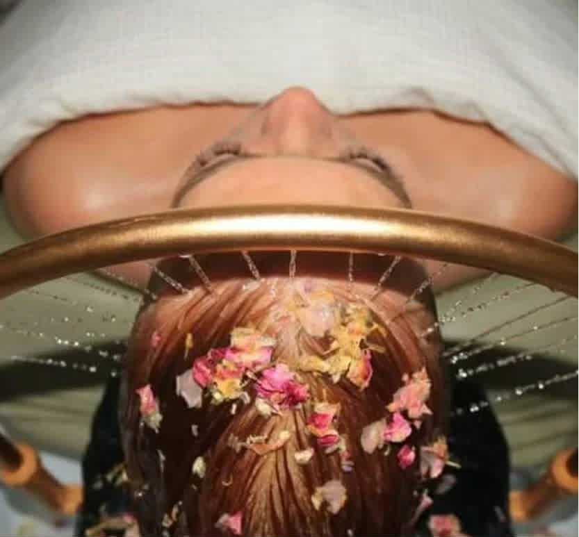 A deeply restorative Ayurvedic-inspired ritual designed to nurture the scalp, hair, and spirit. Begin with an aromatic botanical cleanse and nourishing conditioner, followed by a warm oil scalp massage to ground and soothe. A rich herbal mask and gentle botanical steam infuse hydration and vitality into every strand. The experience unfolds beneath a soothing halo waterfall rinse, complemented by acupressure and ASMR-style relaxation techniques to quiet the mind and release tension. Each session is infused with aromatherapy and LED chromotherapy, enhancing deep relaxation and energetic balance. 60 minutes